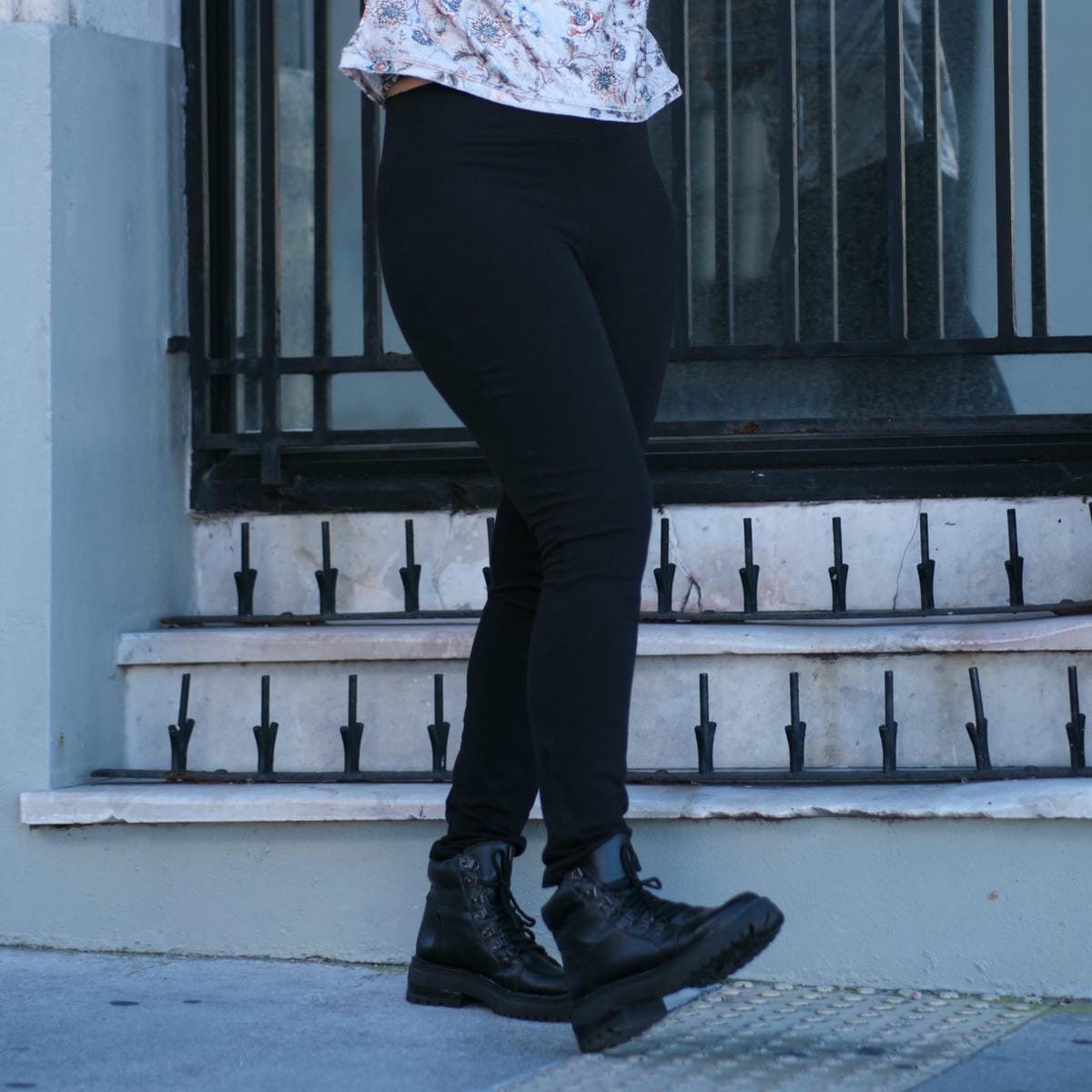 Calza en lycra de algodón una tela super elástica que se adapta re bien al cuerpo. Además de ser muy duradera.