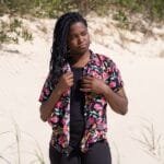 Camisa Moreré estampa flores negro y fucsia