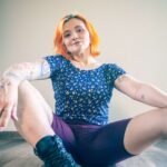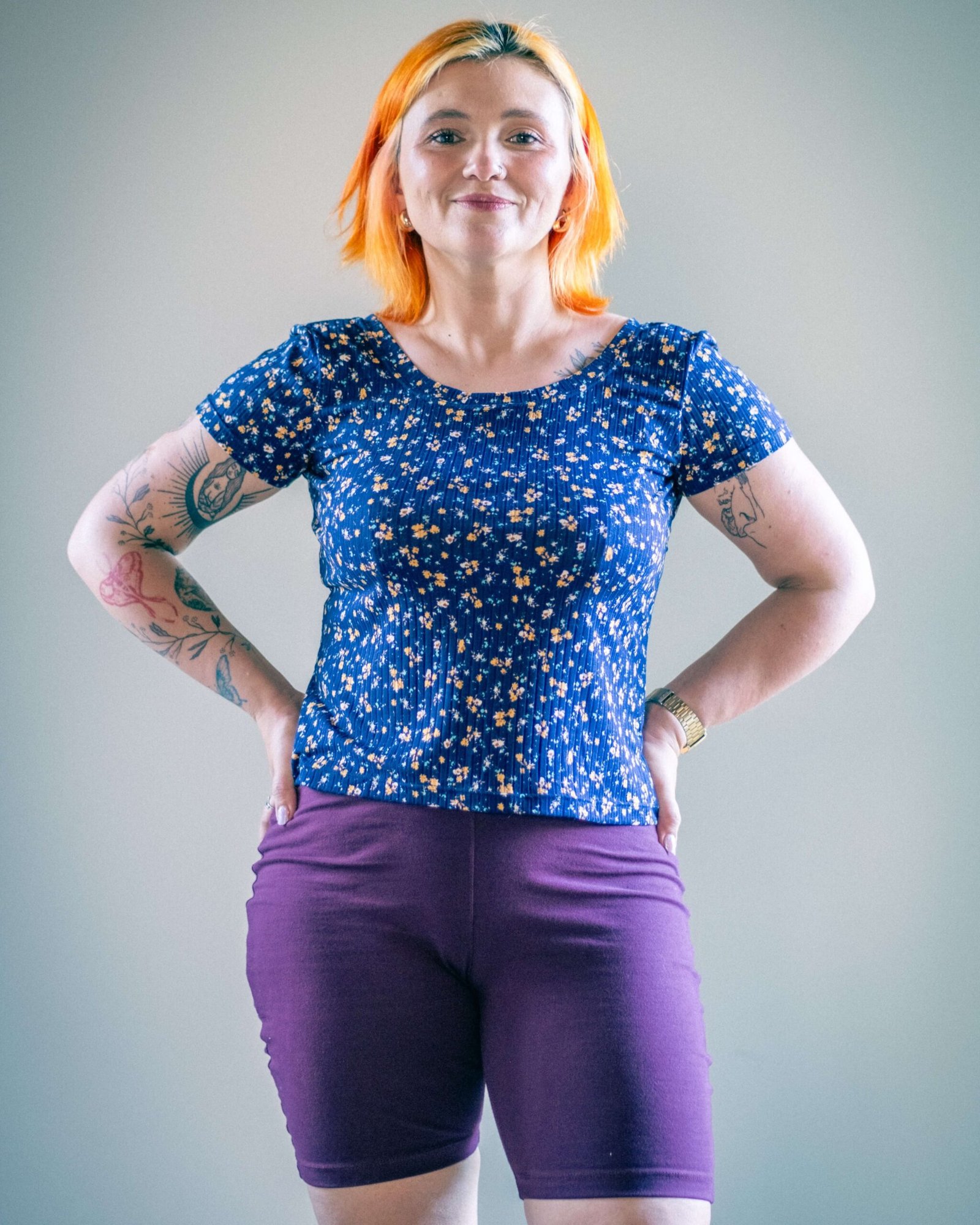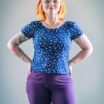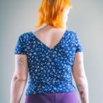 Remera Alma en rib de viscosa estampa a flores con fondo color azul.