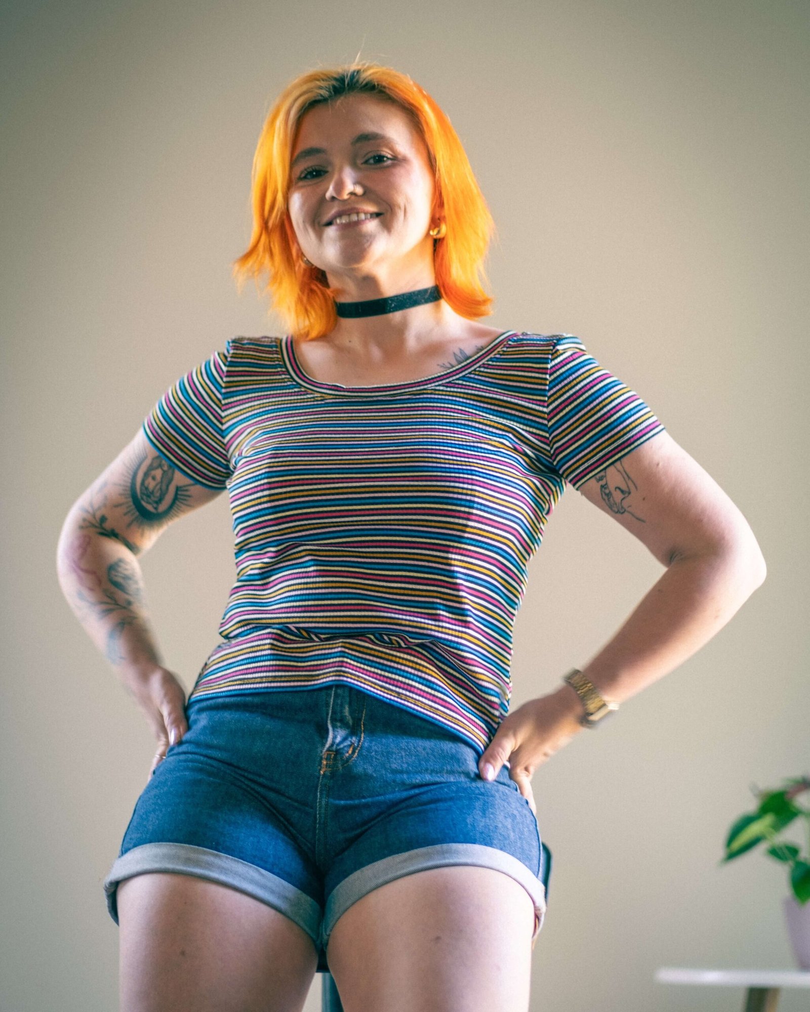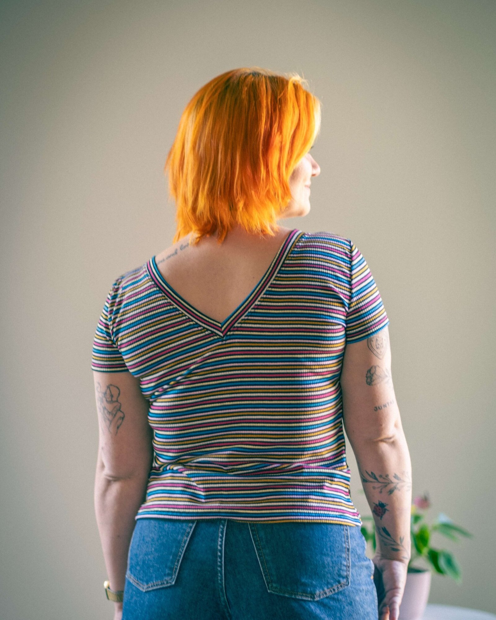 Remera Alma en rib de viscosa rayitas de colores, la que te salva siempre.
