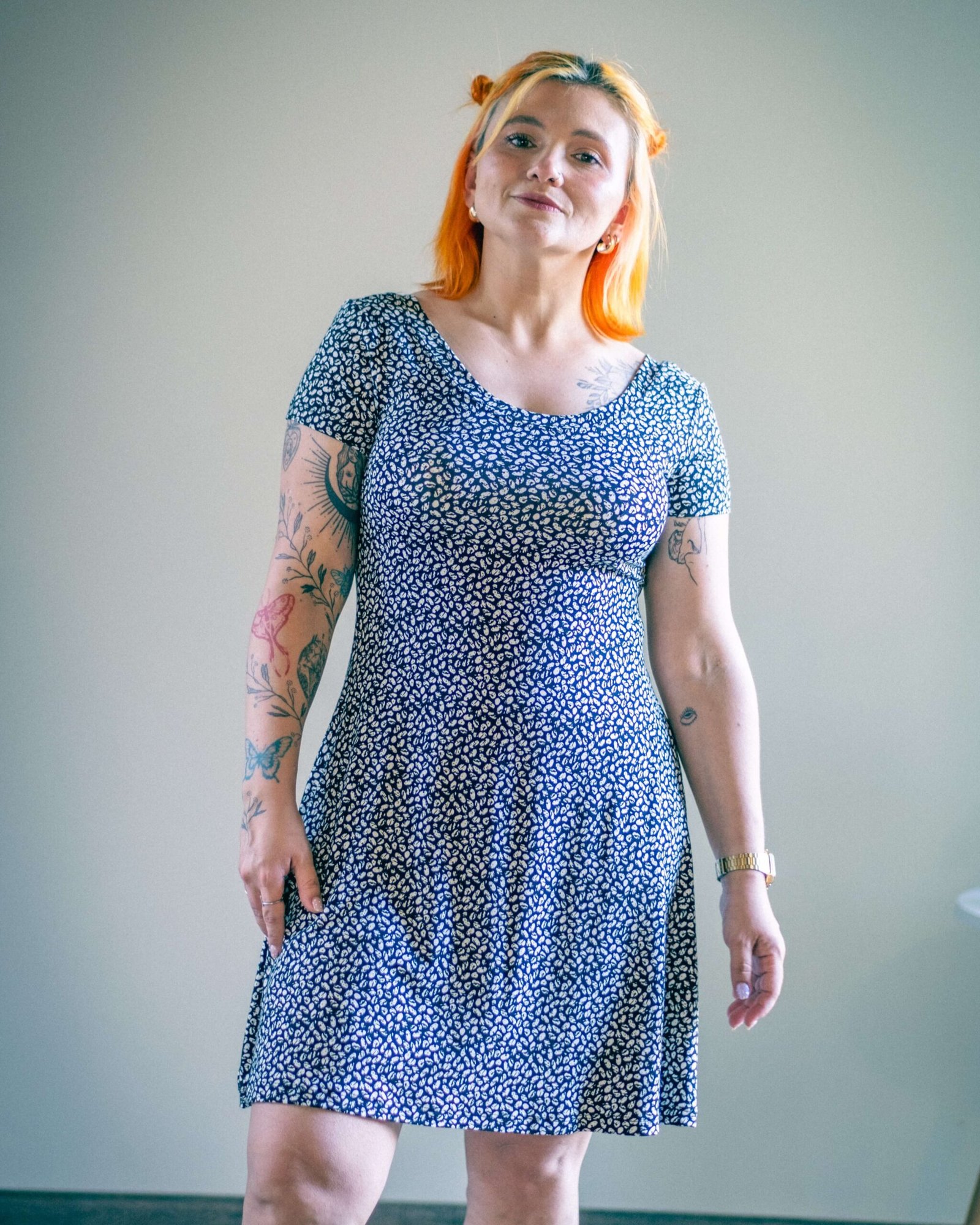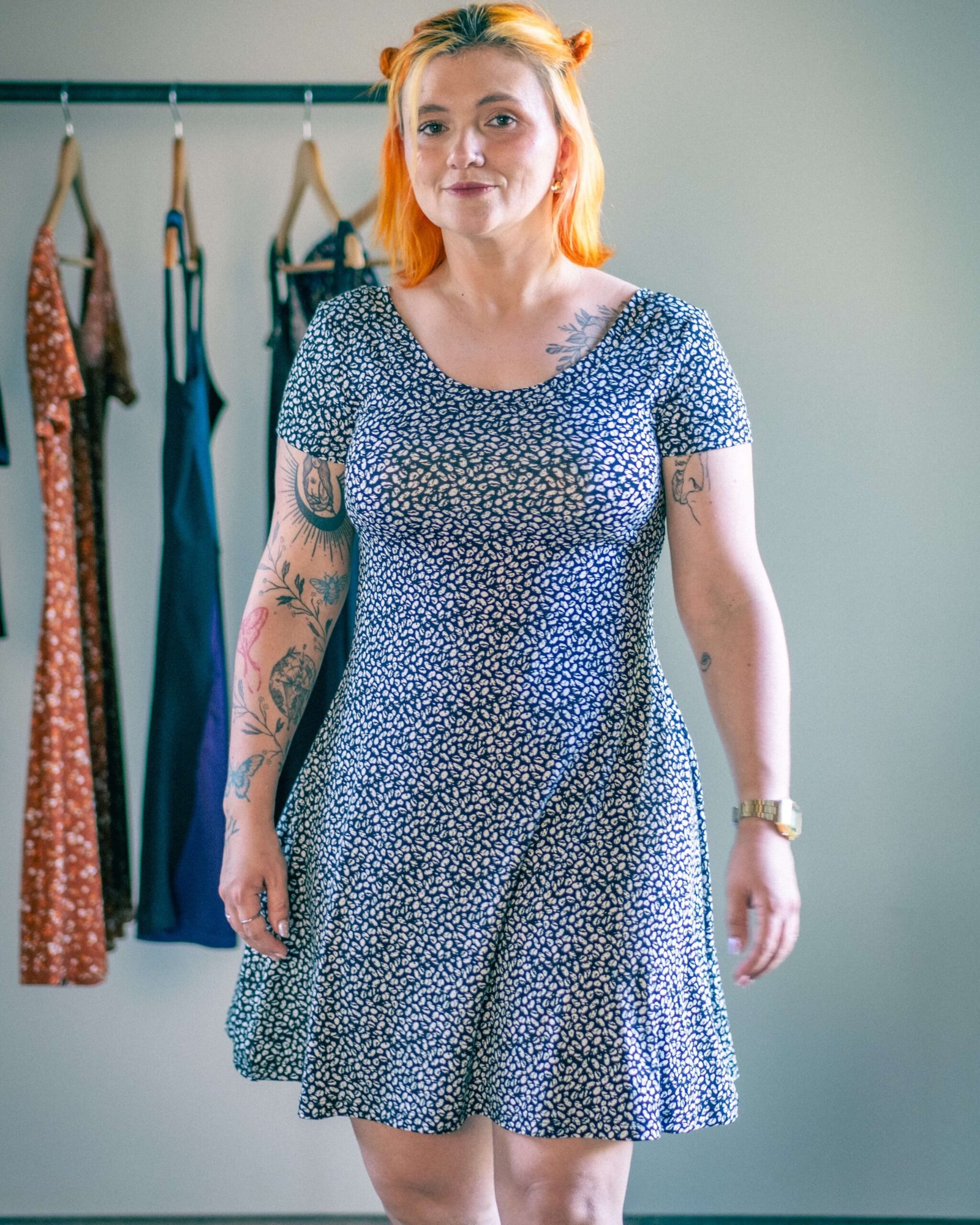 Manga corta, entallado en el busto y justo por debajo de este abre en un ruedo bien amplio. Todas las telas tienen re linda caída, por lo que la falda queda hermosa. Espalda redonda abierta que le da un toque y lo hace bien veraniego.