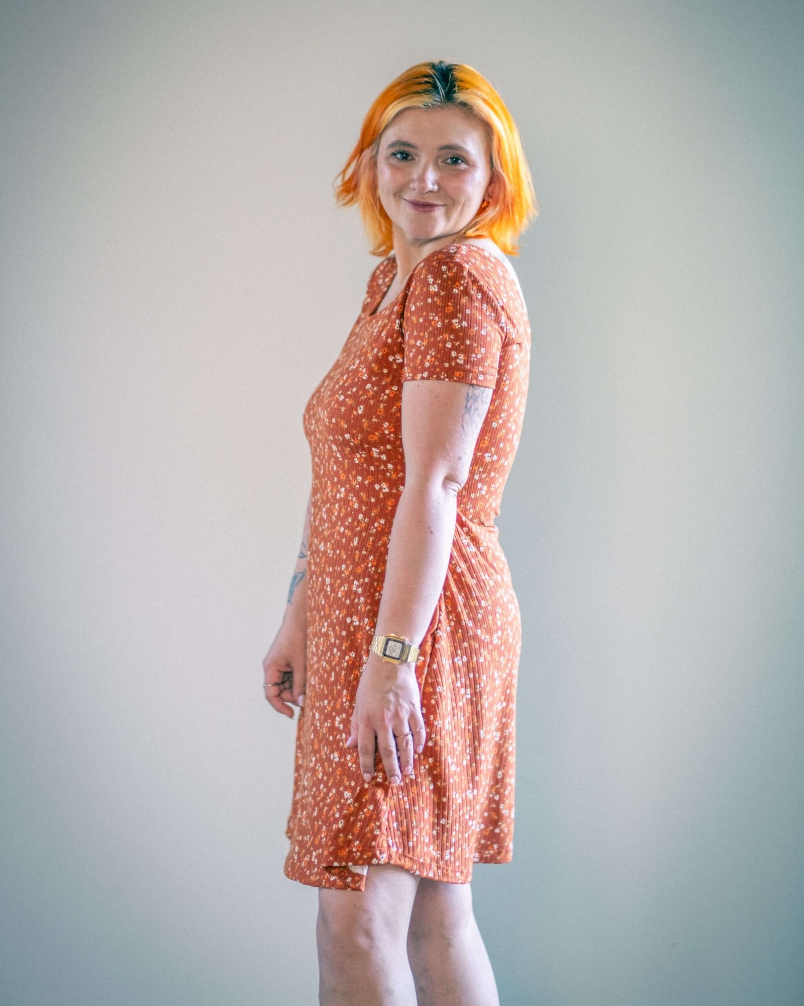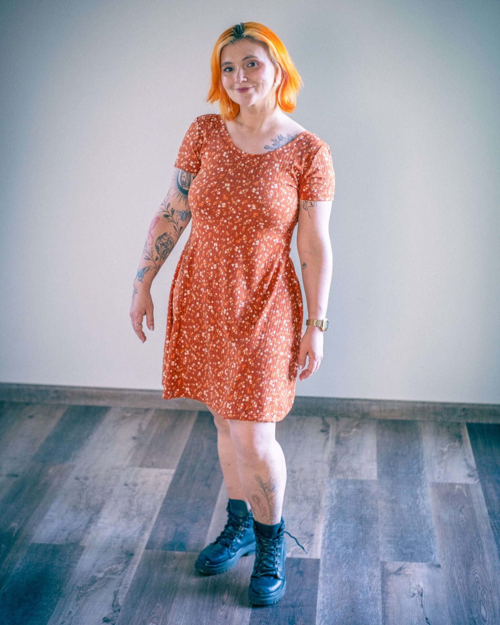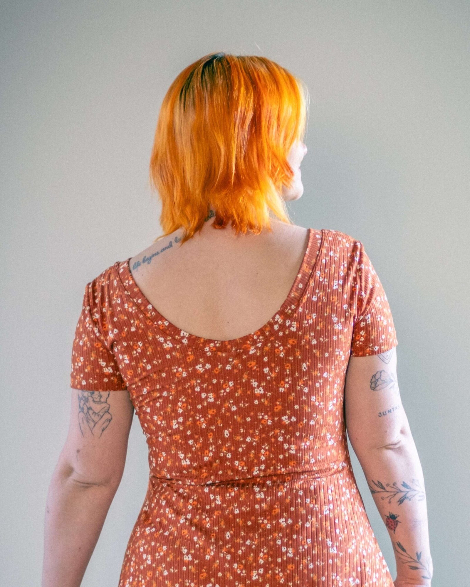 Confeccionados del talle S al 2XL. En las fotos Mel usó Talle M. En tela rib estampada a flores color tierra.